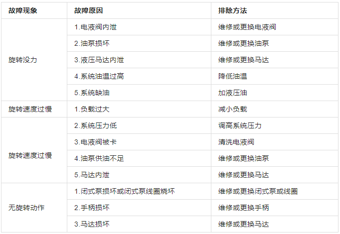 表5 动力头旋转部分常见故障处理表