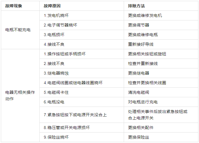 表2 电器部分常见故障处理表